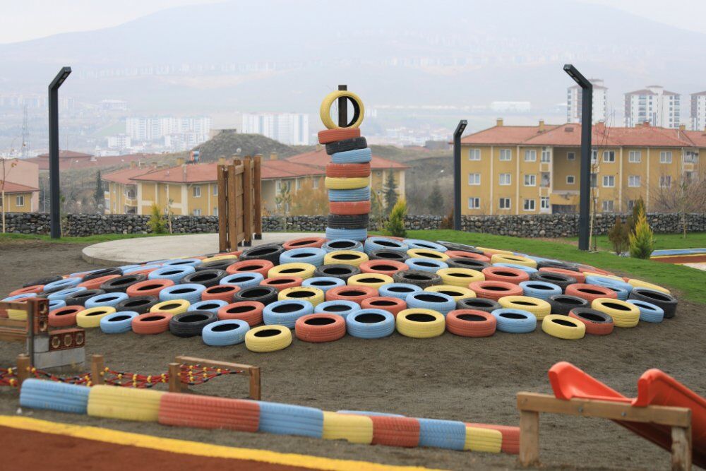 Hurdaya ayrılmış metal, plastik, tahta gibi çeşitli malzemeler kullanılarak yapılan çocuk oyun grupları, mermer atıklarından yapılmış yürüyüş yolları, varillerin dönüşümünden elde edilmiş koltuklar, ağaç kütüğünden yapılmış masa, çeşme, atık kutuları, otomobil lastiğinden yapılan salıncak, tahterevalli, macera parkuru ve metalden yapılmış figürler muntazam bir işçilik ile dönüştürülerek farklı bir şekilde tekrar kullanıma kazandırıldı.