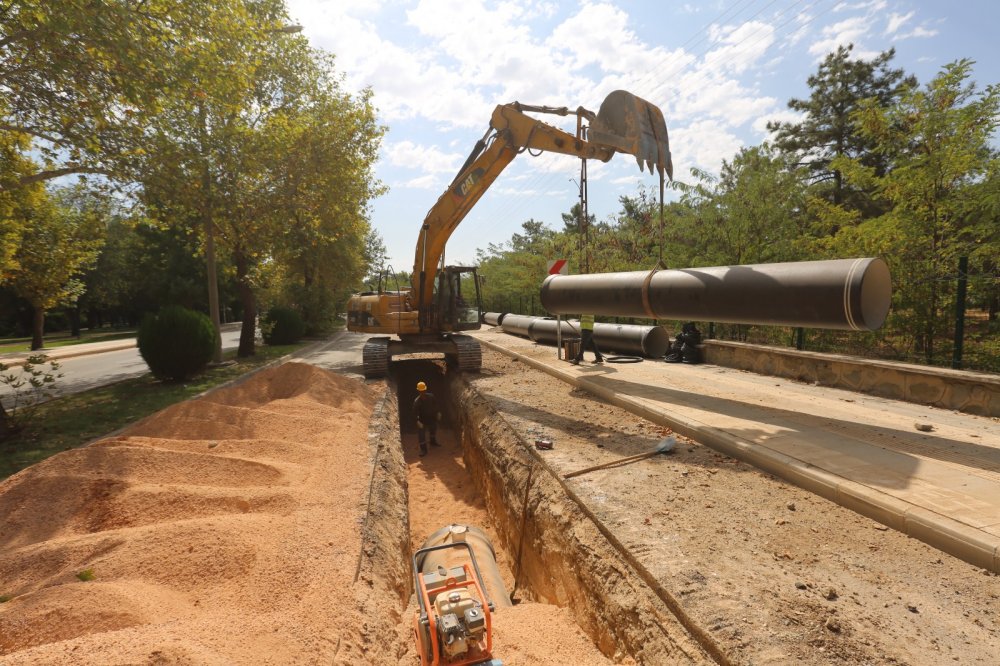 Fırat Üniversitesi yerleşkesinde, 800 mm çapında borularla yeni içme suyu hattı imalatı gerçekleştiriliyor.
