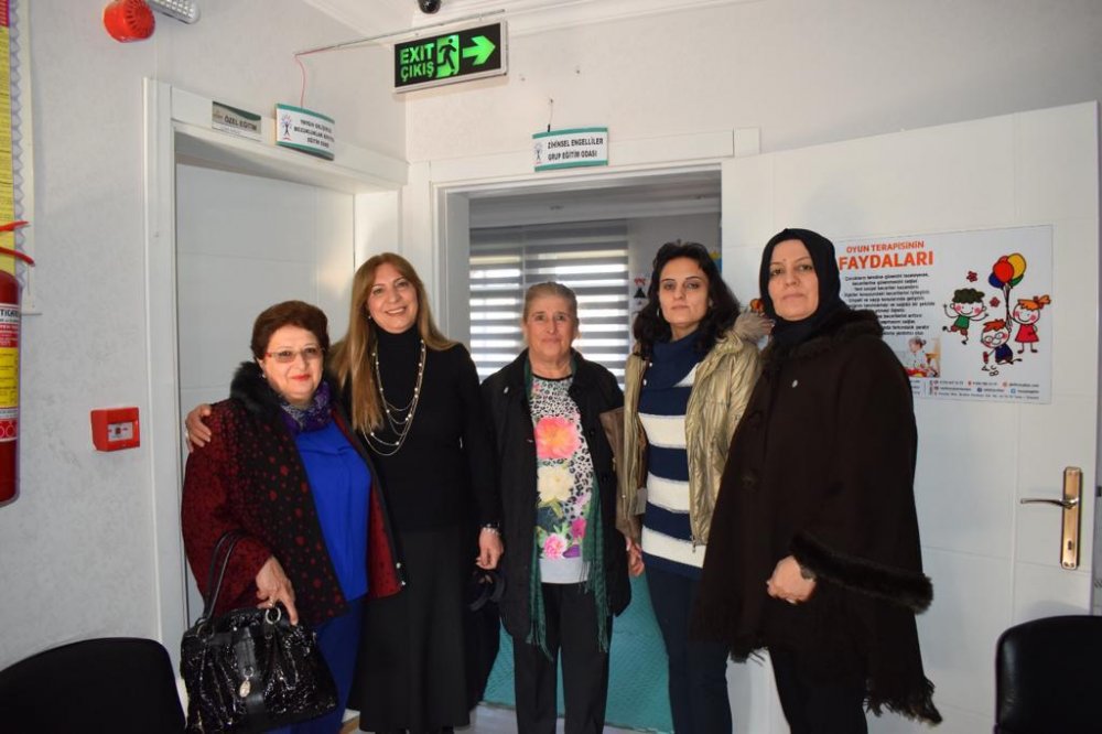 Rehabilitasyon merkezi müdürlerinden ve öğretmenlerinden merkez ve çalışmaları hakkında bilgiler alan İYİ Parti Kadın Kolları Başkanı Gülsema Karakoçan, özel çocuklarla sohbet etti.