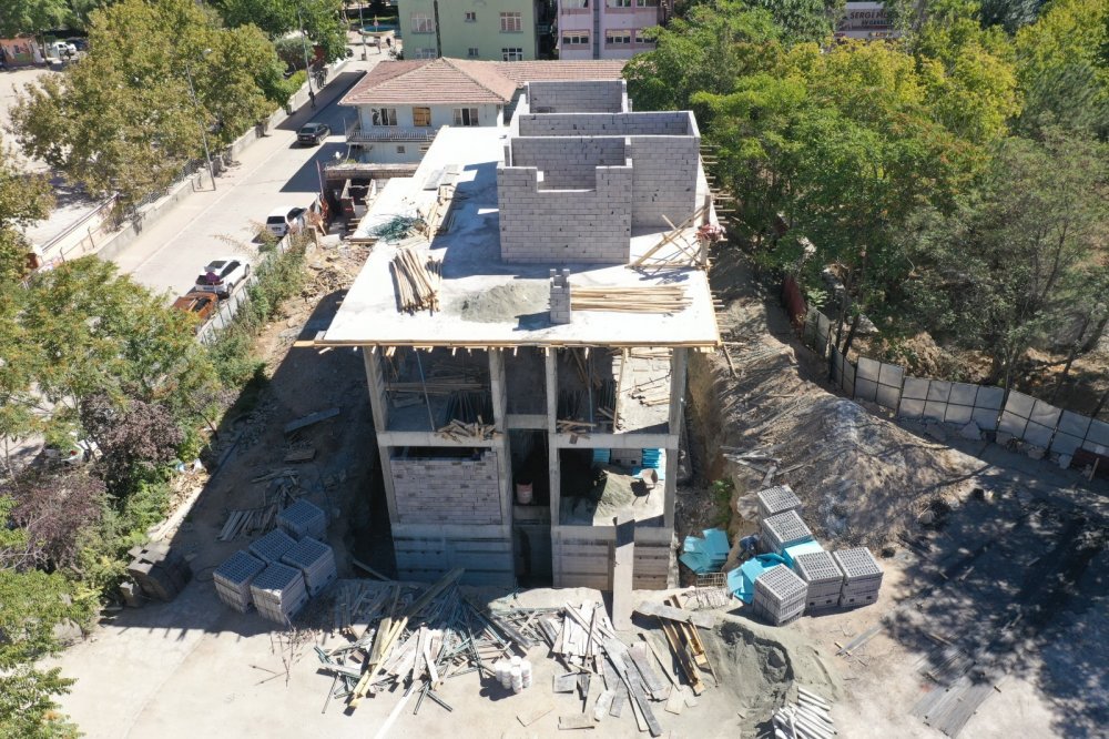 Yeni Hizmet Binası’nın kaba inşa çalışmalarını bitiren belediye ekipleri, sıva çalışmalarının ardından çatı işlemlerini gerçekleştirecek.