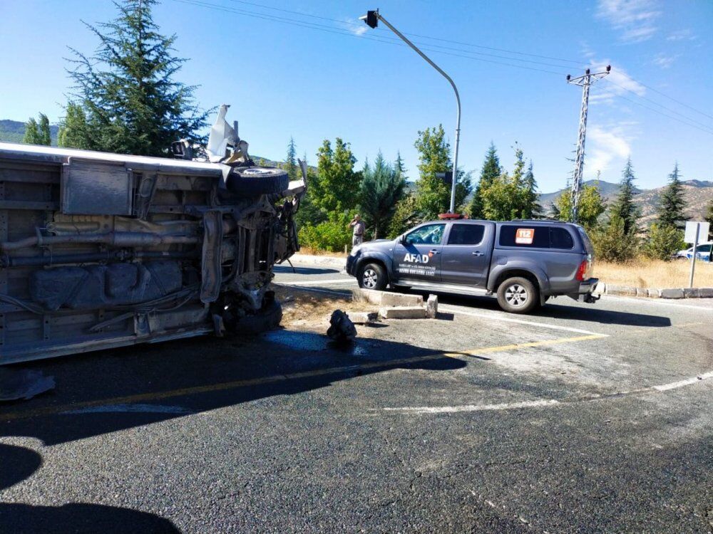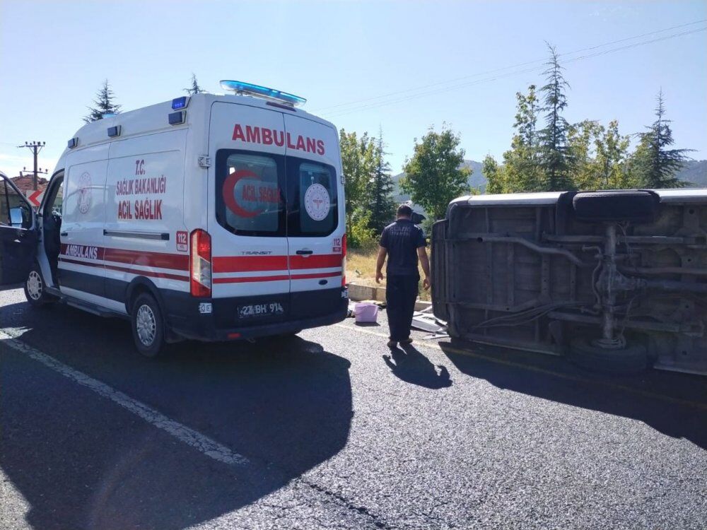 Kazada tur minibüsü, yolcu otobüsüne yandan çarptı. Çarpmanın etkisiyle minibüs sürücüsü direksiyon hakimiyetini kaybetti. Araç yan yattı. Minibüste bulunan 18 kişi yaralandı.