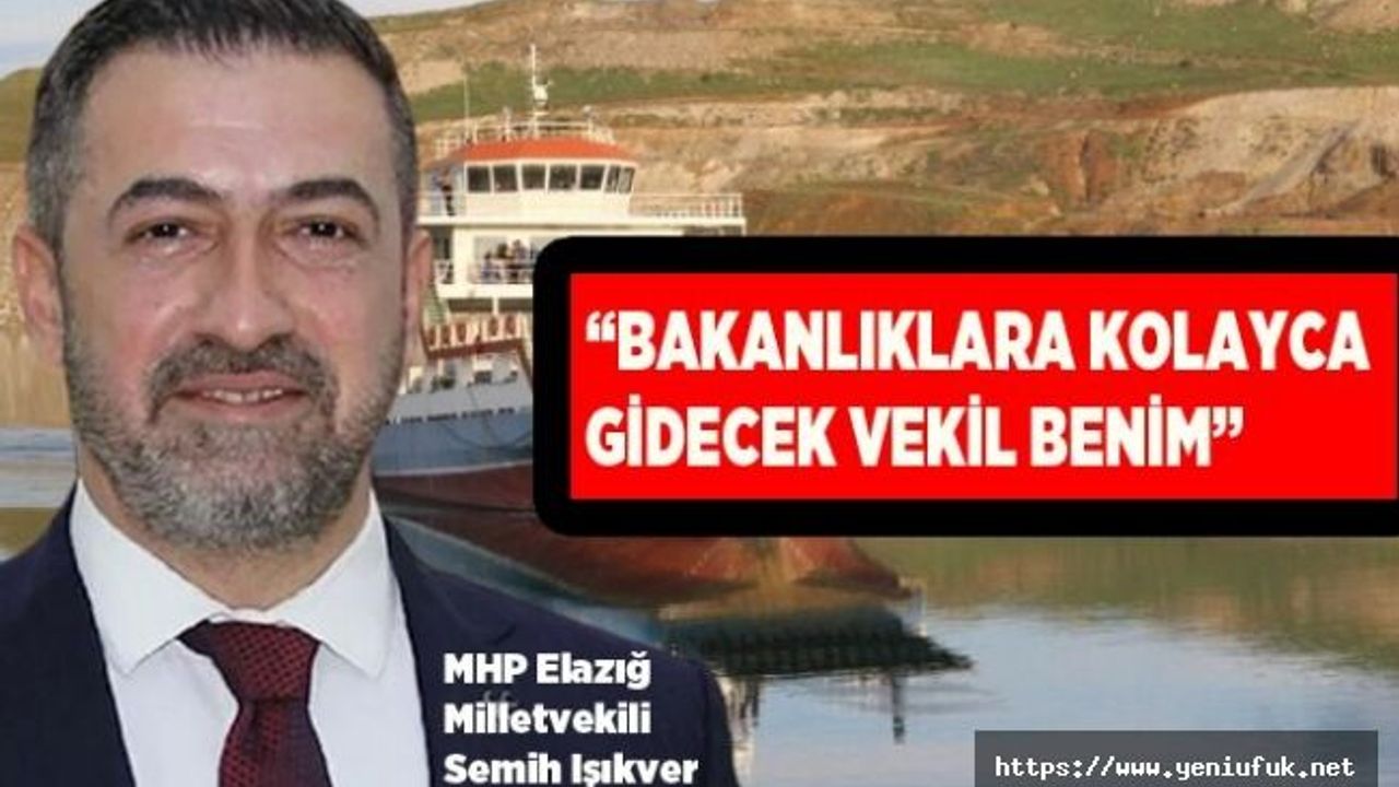AK Parti Elazığ Milletvekilleri, projenin yıl sonu itibariyle ihalesine çıkılacağını açıklarken, MHP Elazığ Milletvekili Semih Işıkver ise katıldığı programda çarpıcı açıklamalarda bulundu. Bayındırlık, İmar, Ulaşım ve Turizm komisyonunda Elazığ’ı temsilen tek milletvekili olduğunu söyleyen Işıkver, “Bakanlıklara kolayca gidecek vekil benim. “ dedi